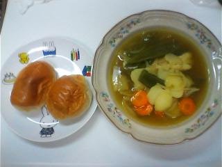 (でもカレー粉で味付けなのw)の汁物にそれぞれたらが入ってます^^b